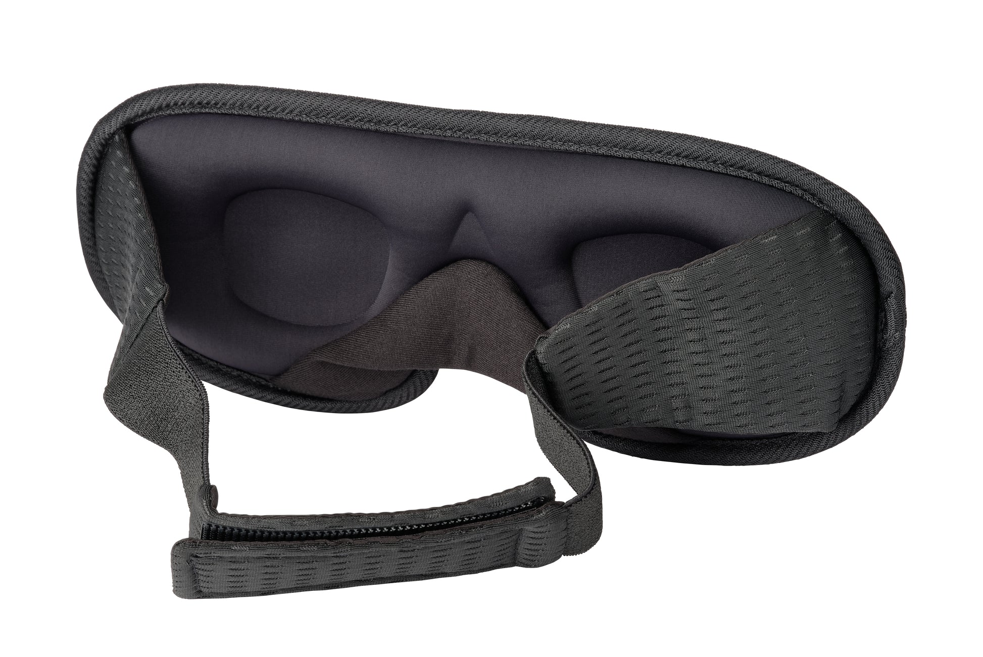 It provides 100% block-out and is extremely comfortable with contoured memory foam which allows you to blink. The adjustable Velcro elastic strap keeps it securely in place while you sleep. It can be worn with your NotNodi® travel pillow or fitted as an alternative to a headband.